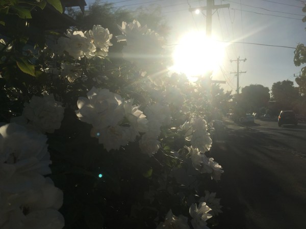 looking for this cat I like. The roses were in full bloom and the light was doing that thing where it beautifully bounces off the soft petals and hard concrete. I took this shot feeling incredibly