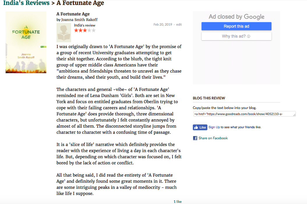 I have recently found myself infatuated with social networking site Goodreads. I think of it as a Facebook for intellectuals, but in actual fact it’s just another platform to brag on. And that’s exactly why I love it. An any opportunity to show off how cultured you are is one worth taking. On Goodreads I can update my page count and provide thoughts on the current book I’m devouring. Something no one gives a rat’s behind about on Instagram, and my God, if you are still using it Facebook. Which is exactly what makes Goodreads so delicious. It is solely about the books. Better not be posting about your holiday Greece or new engagement. Goodreads is simply too cultured for that, too smart. You better live up to it’s good name otherwise you’ll be outed as a fraud. So I make sure to keep up appearances and lay low as the common book nerd does.